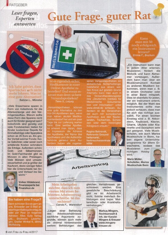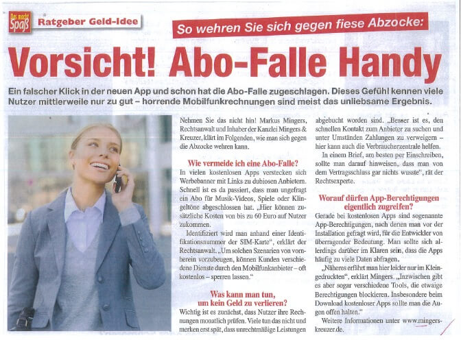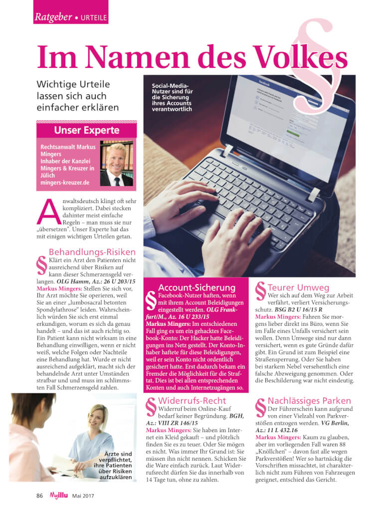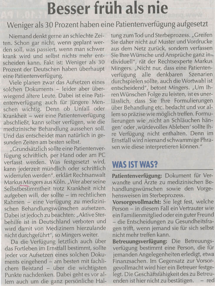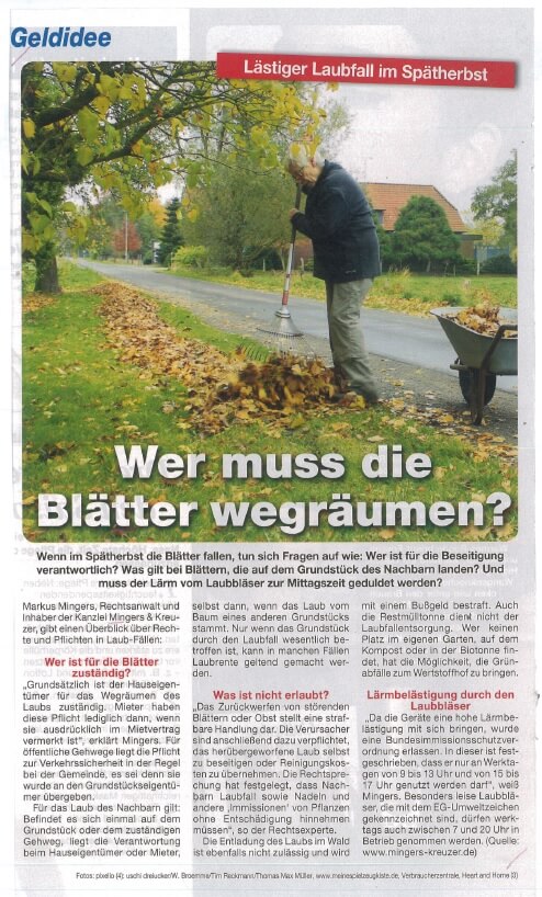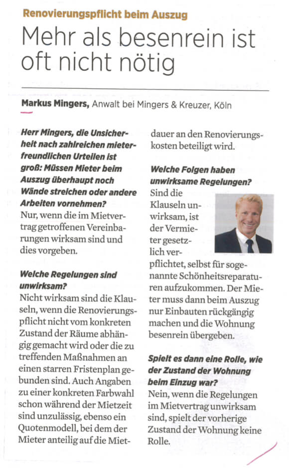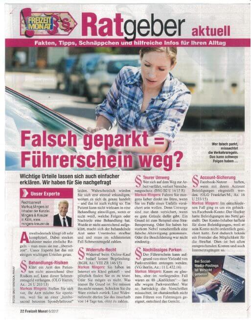 Presse und Veröffentlichungen von Mingers & Kreuzer - Rechtsanwälte in Jülich, Bonn, Hückelhoven, Köln & München