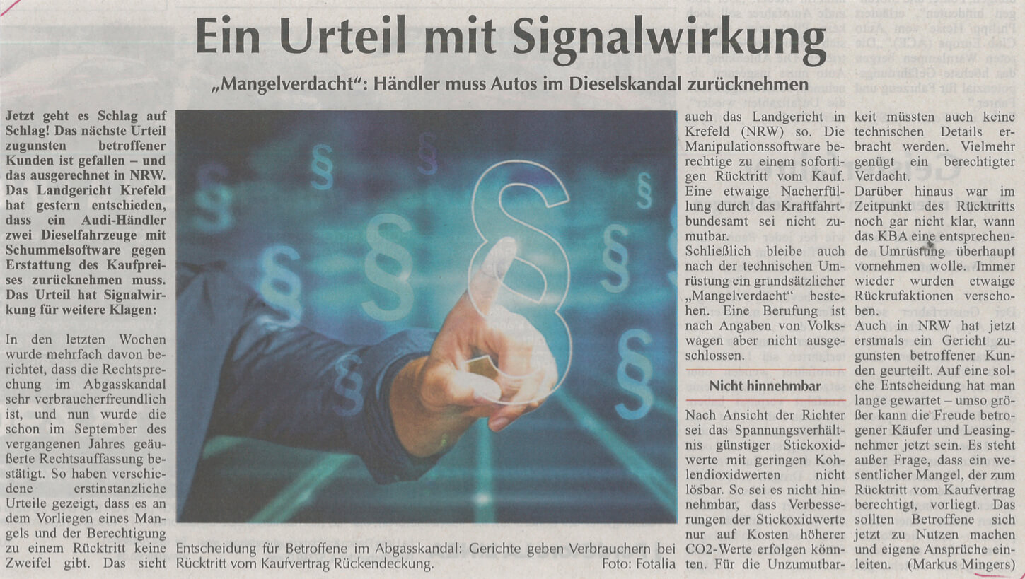 - http://www.focus.de/finanzen/experten/markus_mingers/abgasskandal-warum-die-rechtsschutzversicherung-ihre-vw-klage-unterstuetzen-muss_id_7265661.html